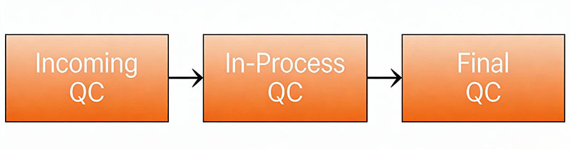 Ask about their QC protocol: Incoming Quality Control (IQC), In-Process QC (IPQC), and Final QC (FQC).
